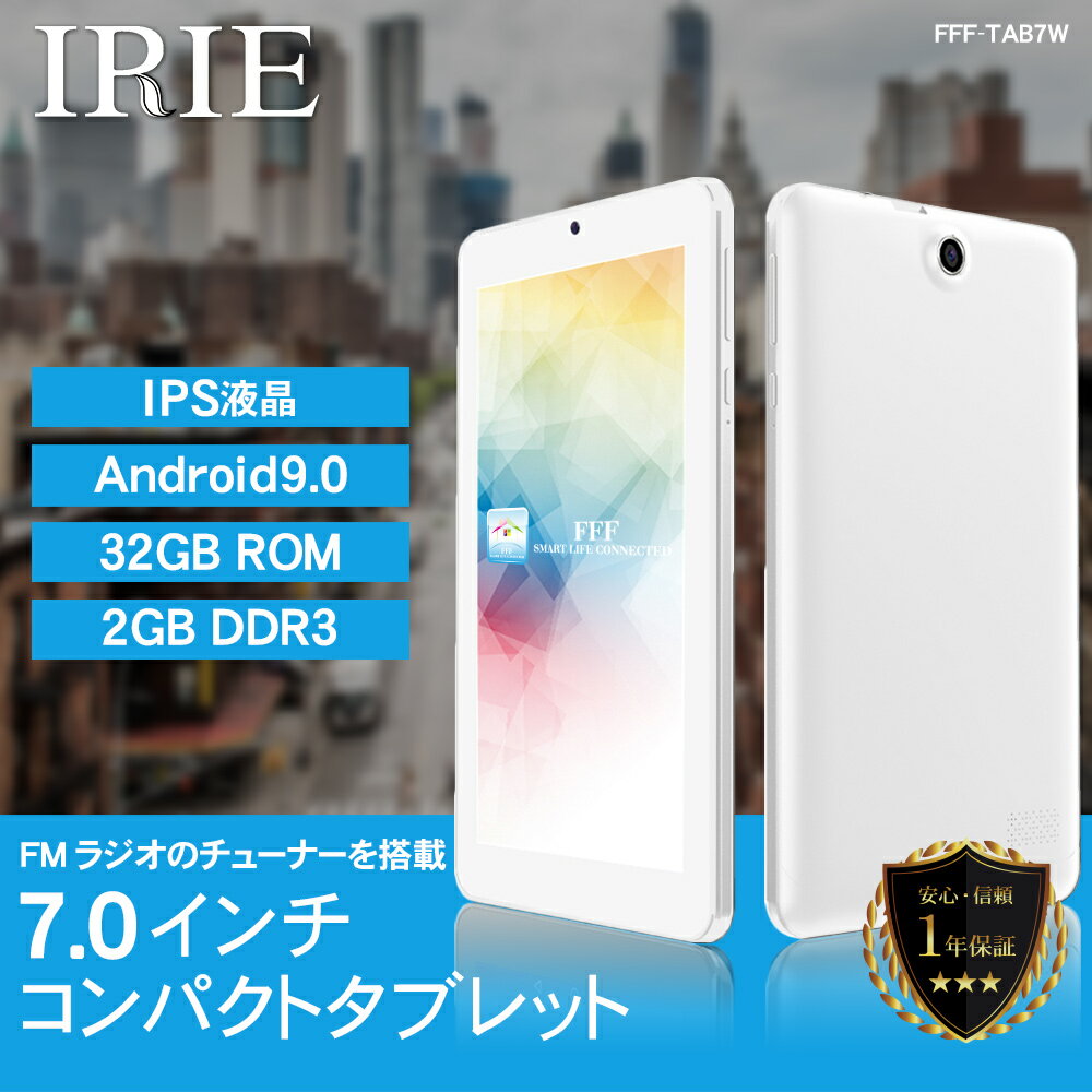 メーカー希望小売価格はメーカーサイトに基づいて掲載しています スペック 型番 FFF-TAB7W JANコード 4589969397025 プロセッサー MTK MT8163 Quad Core Cortex A53 1.3GHz オペレーティングシステム Android 9.0 標準言語 日本語 マルチ言語対応 メイン画面 7インチ 1024×600 IPS液晶 タッチパネル 静電方式 メインメモリ 2GB DDR3 本体記憶メモリ 32GB※1 対応メモリカード microSDカード(512MB〜128GB対応) リチウムイオン電池 3.7V 2,800mAh 充電時間 付属のACアダプタ 2-3時間 ボタン 電源ボタン・リセットボタン音量+ボタン・音量-ボタン USB 1ポート※2 マイクロSDカードスロット 1ポート ヘッドフォンポート 1ポート スピーカー 内蔵 マイク コンデンサーマイク内蔵 AC充電ポート 1ポート/ 5V対応 付属ACアダプタ 入力:AC100-240V 50-60Hz出力:5V 1500mAケーブル長:約80センチ 無線LAN IEEE 802.11 a/b/g/n 5.0GHz帯/2.4GHz帯対応 Bluetooth Ver4.0対応 カメラ 静止画/動画対応:2カメラフロント30万画素 リア200万画素 CMOSカメラ G-Sensor 搭載※3 GPS 搭載※4 FMラジオ 搭載※5 本体重量 270g※6 本体サイズ 約188.75mm×109mm×11.6mm(突起物除く) 付属品 USBケーブル(通信・充電用)×1本・ACアダプタ×1台・マニュアルページのご案内 兼 保証書×1枚 標準価格 12,000円(税込み) 保証期間 1年間 ※1.約26GBの空き領域。
