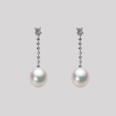 (5段階評価/日本の全生産量ベース)素材・詳細K18WG(ホワイトゴールド)、ダイヤモンド・0.04ct(片側・0.02ct)真珠の産地日本付属品保証書 日本でも、世界でも、アコヤ真珠の高級品の40%以上は当社製です。