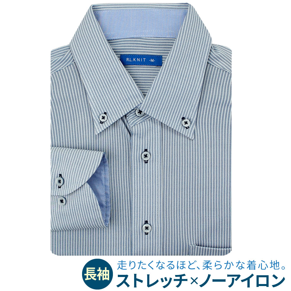 ニット ワイシャツ《ストレッチ+イージーケア≫リモートワーク テレワーク メンズ スリム 形態安定 青 ストライプ カッタウェイ ボタンダウン ポロシャツ Yシャツ 全6型【メール便で送料無料】【長袖】/sun-ml-sbu-1788【クールビズ】【10】【ct01】
